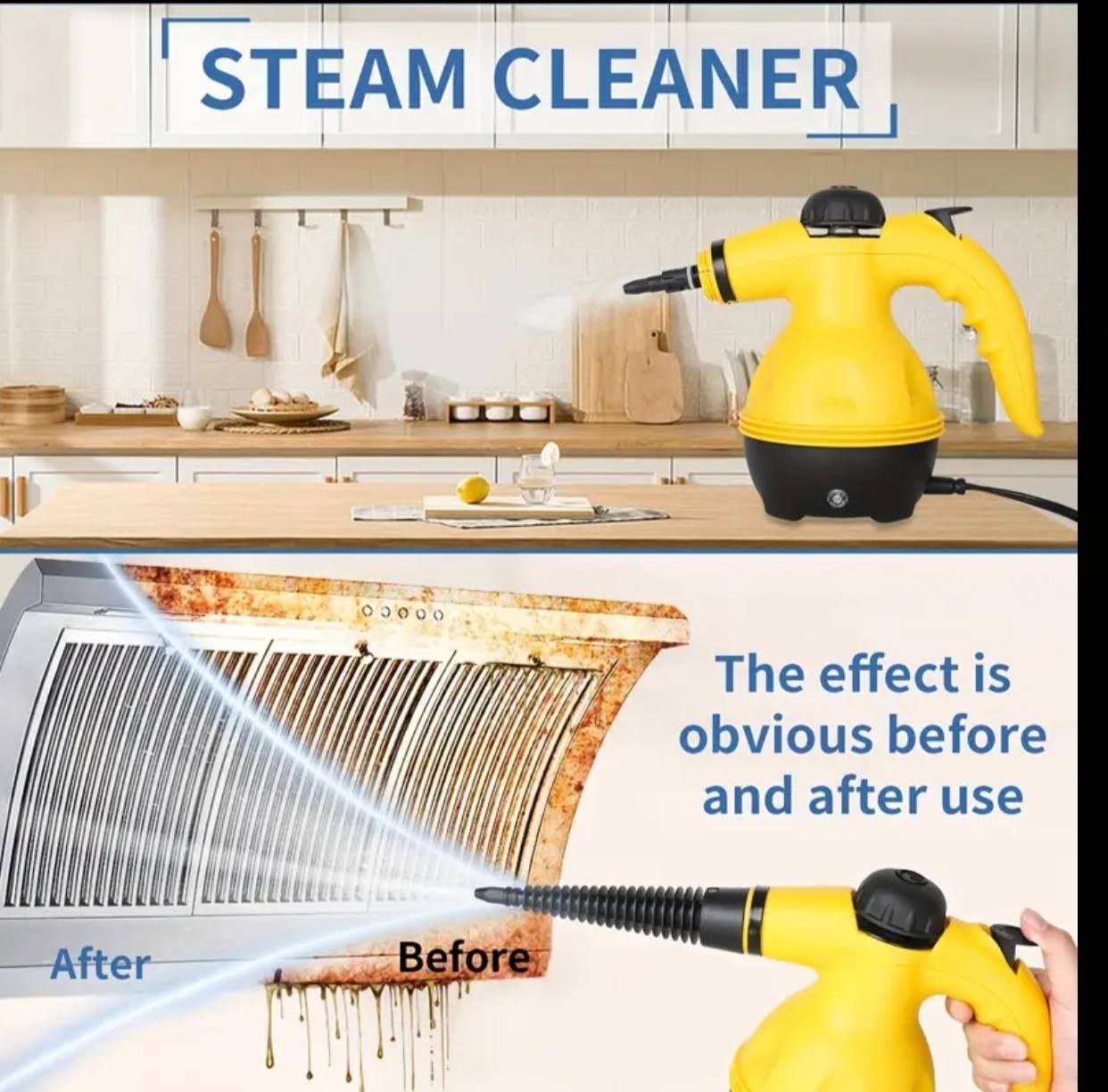 قوة جبارة 1000 وات تذوّب أصعب الدهون والأوساخ بدون مجهود! ملحقات عبقرية علشان توصلي لكل ركن في بيتك بسهولة تحويل الماء إلى بخار في دقائق للقضاء على الجراثيم والبكتيريا بنسبة 99.9%! مناسب لكل الأسطح سواء كانت الجدران المفروشات السجاد الزجاج المطبخ المكاتب وحتى السيارات تنبيه مهم جدًا: علشان تحافظي على أمانك ما تفتحيش الغطاء قبل خروج البخار سعة خزان المياه: 350 مل علشان تستخدميه فترة أطول طول السلك/ 3 أمتار لسهولة الحركة والتنقل أثناء التنظيف. مدة التشغيل من 8 إلى 15 دقيقة متواصلة قبل الحاجة لإعادة التعبئة مميزات الجهاز تصميم صغير وخفيف الوزن سهل الحمل والتخزين.