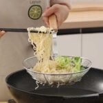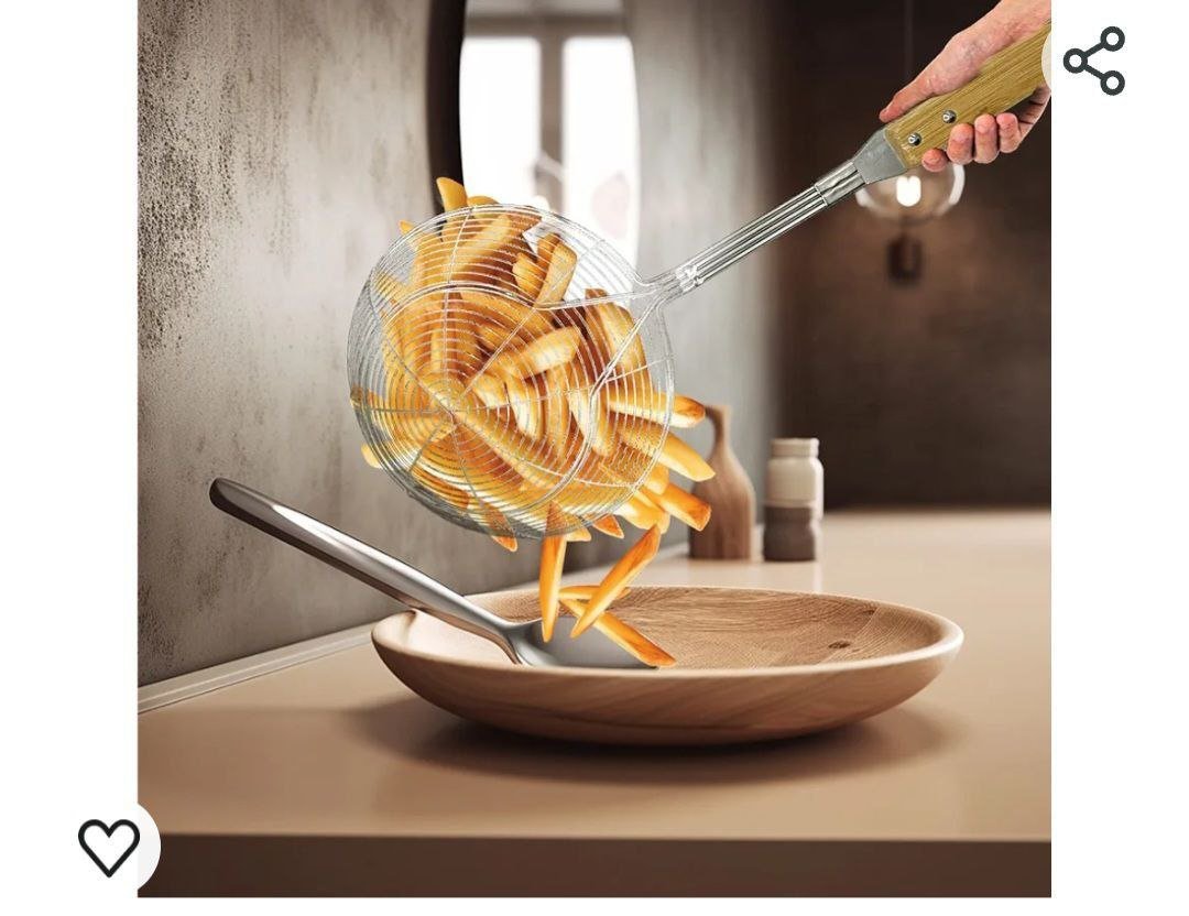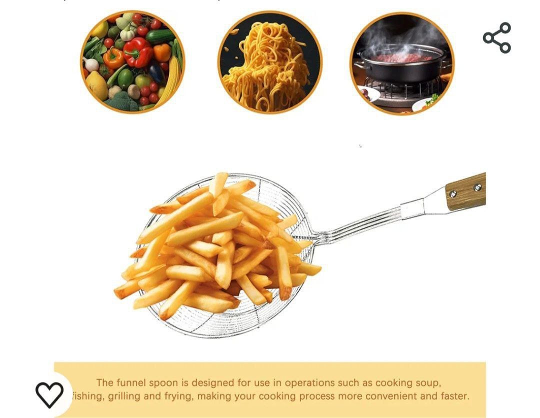 شياله ومصفاه بطاطس و طعمية و جميع المقليات استانلس لوكس بيد خشب زان المصفاه سلك 4 لاين لقوة التحمير مقاس 14 سم