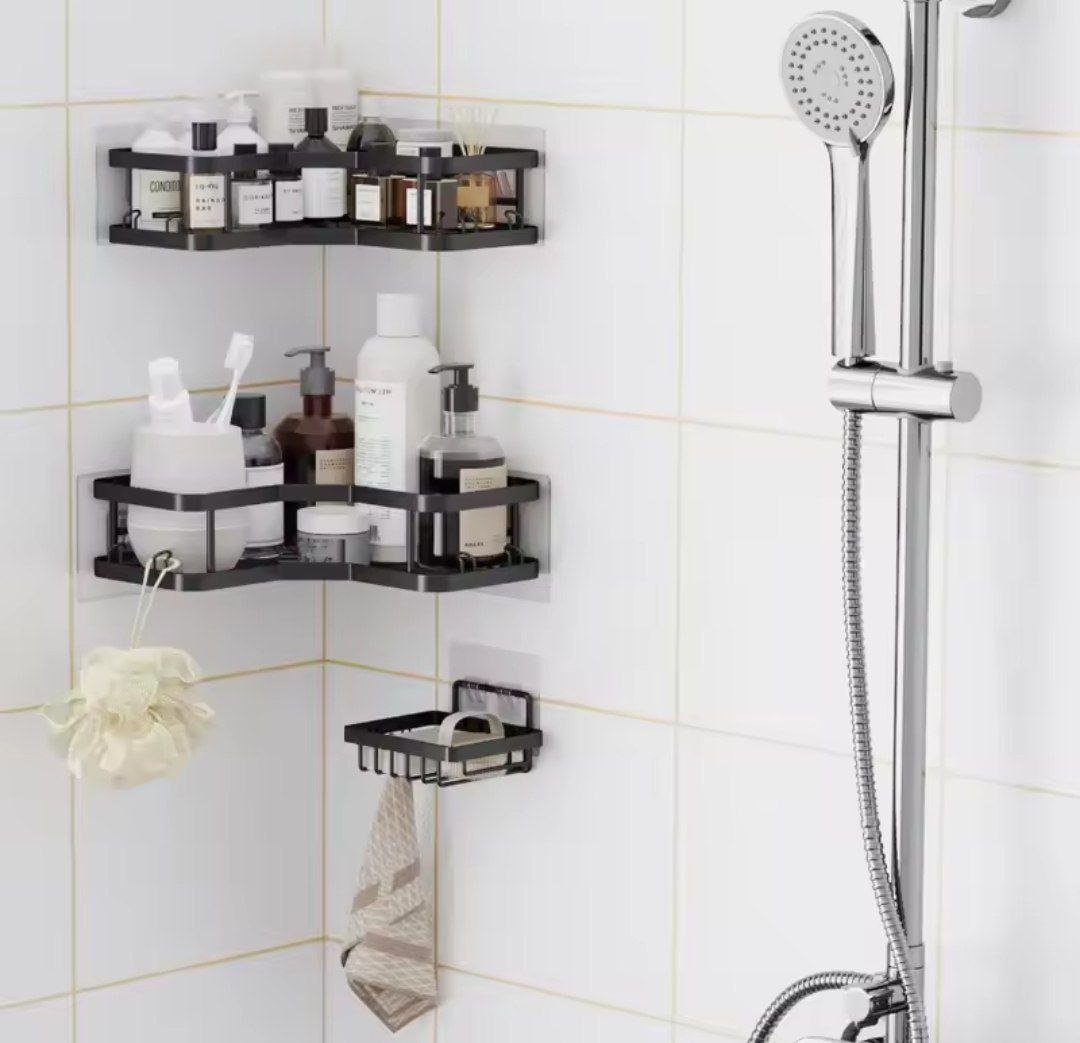 مكون من 2 ركنه معدن و2 صبانة وحامل فرش الطقم يستعمل ركنه شاور او ركنه لادوات المطبخ