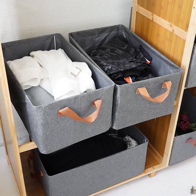 بوكس تنظيم الملابس في الدولاب منظم دريسينج رمادي خامة قماش كتان تقيل بيدين لسهولة حمله منظم دريسنج المقاس 47*30 وارتفاع 20 سم منتج مستورد