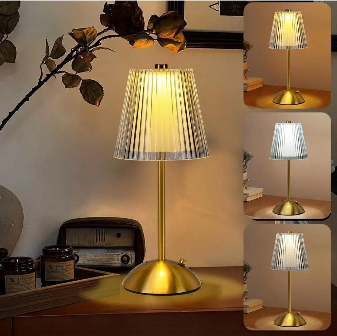 مختلفة تعمل بالشحن للمكتب وغرف النوم والأطفال اباجورة مودرن شيك هتضيف اجواء هادية للبيت مناسبة لغرفة النوم او الليفنج او المكتب مصنوعة من كريستال اكليريك عالي الجودة حامل استانليس ستيل مطلي باللون الجولد مزودة ب 3 اضاءات مختلفة ابيض و وورم واصفر تعمل بالتاتش وشاحن يو اس بي مرفق معها يمكن التحكم في درجة سطوع اللون بالضغط المستمر علي زر التاتش طول الاباجورة: 30 سم عرض المقعد : 10 سم