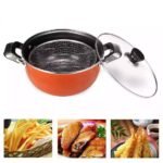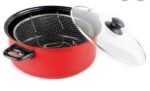 حله بالباسكت وغطاء زجاجي جرانيت المكونات: حلة + غطاء زجاج حراري + باسكت شبك + ٢ مقبض استانلس الخامة:تيفال مانع للألتصاق – لتحمير البطاطس و الفراخ والجمبري وغيرها الكثير – بعد الإنتهاء من التحمير يمكنك الضغط على زراعي الباسكت لرفعه الى أعلى كما في الصورة لتصفية كل الزيت – ضروريه جدا لكل مطبخ وصلت بخامه تيفال وجوده ممتازه تقيله