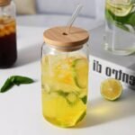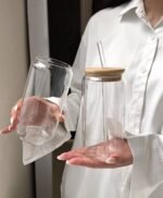 كوب برطمان كانز الزجاج بشاليموا زجاج مج شكل الكانز مزود بغطاء خشب+شاليموه زجاج زجاج بايركس بيستحمل حراره وبروده سعة 550ملي