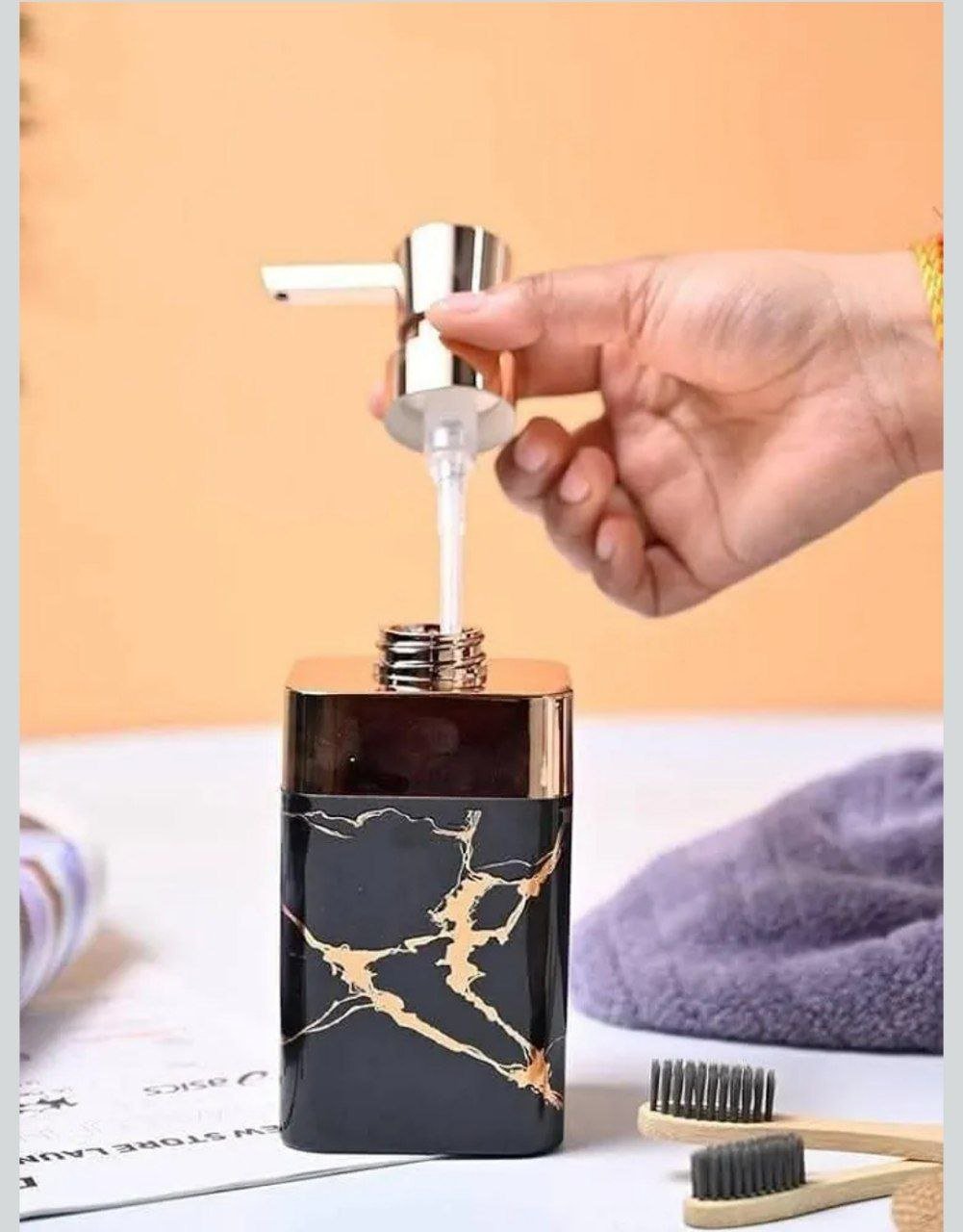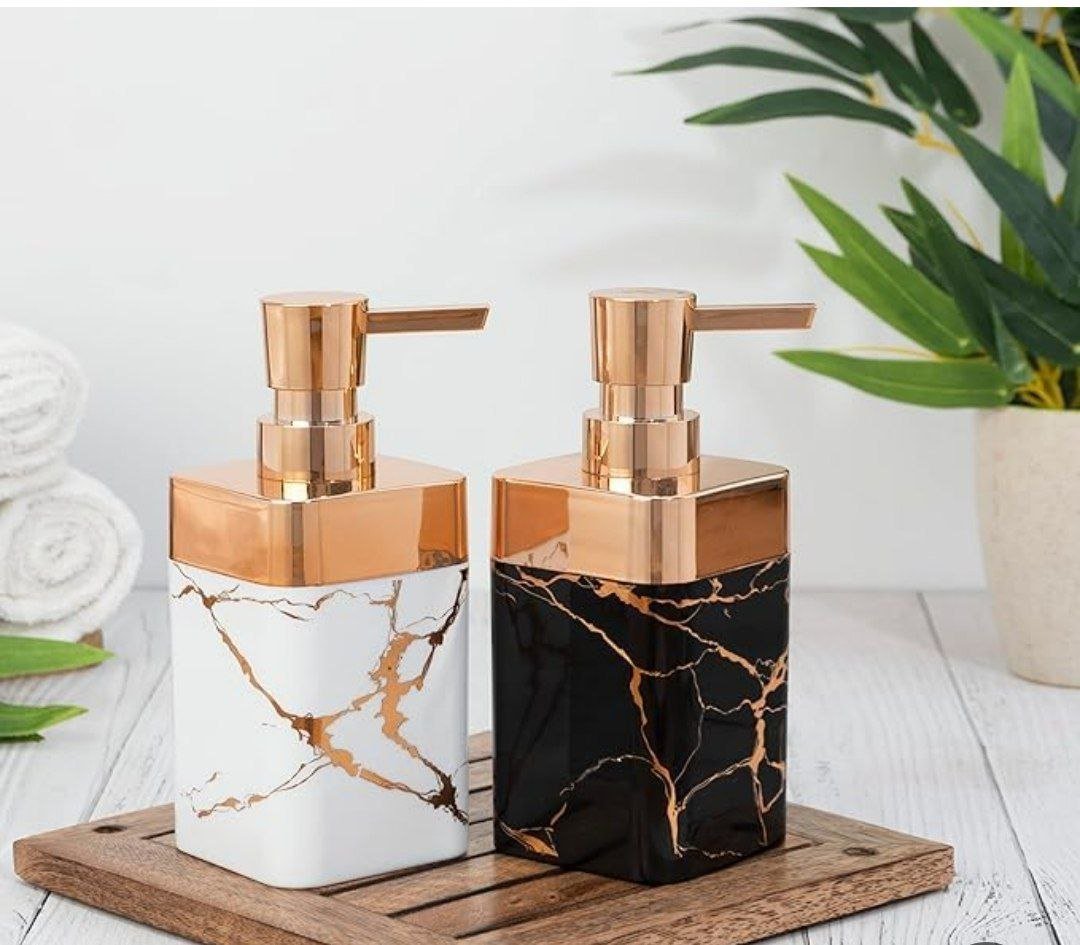 بلمسة من الأناقة بتصميم مزين ماربل رخامي موزع صابون بمظهر لامع يضيف لمسة راقية لحمامك